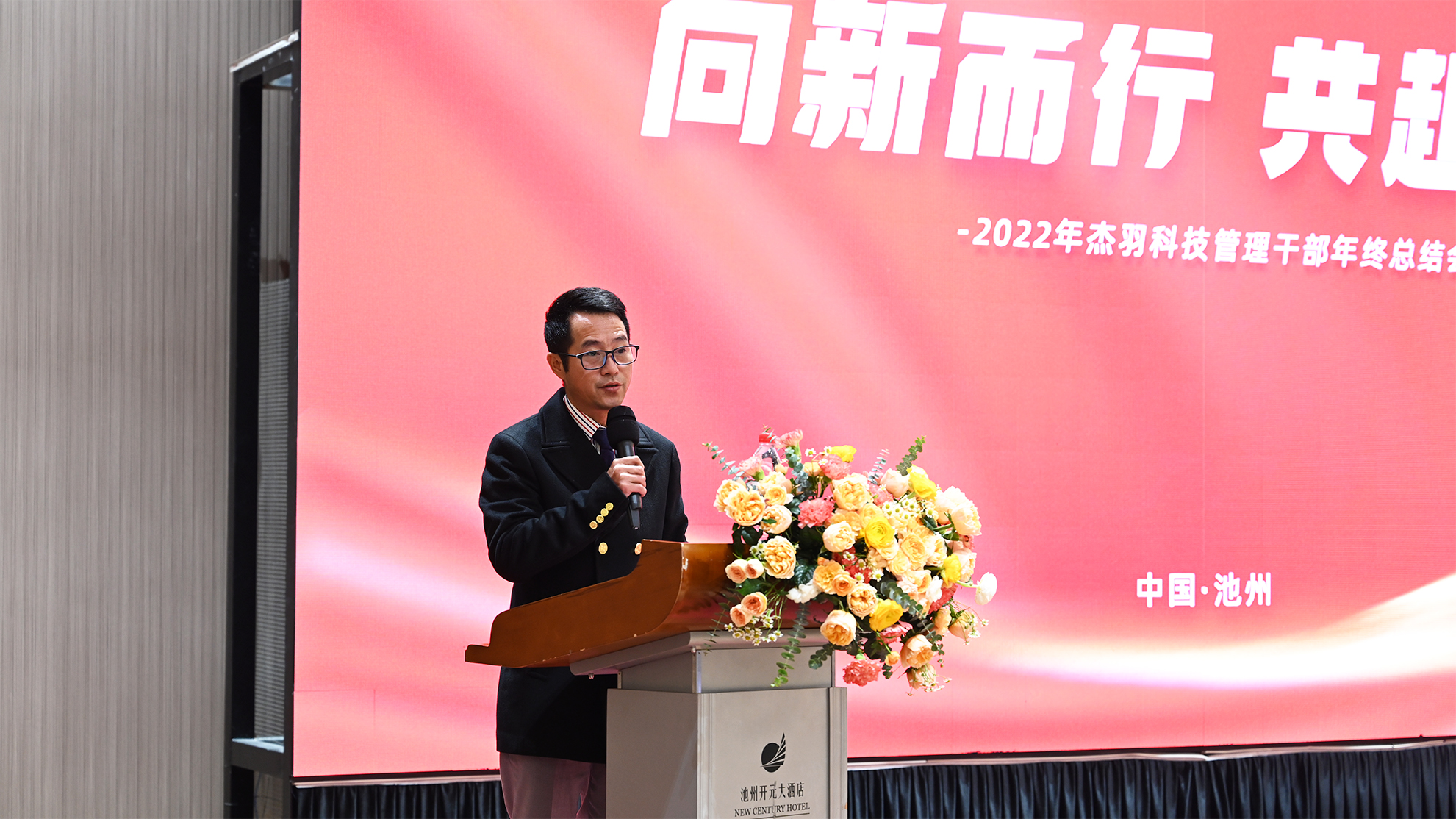 會議上,總經(jīng)理王精文首先對大家一年來的辛苦付出給予高度肯定,并贊揚了杰羽人在跌宕起伏的2022年里所展現(xiàn)出的堅持不懈、努力奮斗的可貴精神;其次,王總從安全生產(chǎn)、銷售業(yè)績、研發(fā)成果、市場營銷、生產(chǎn)制造、質(zhì)量提升、流程IT和質(zhì)量運營、公共關(guān)系與項目爭取、戰(zhàn)略規(guī)劃和產(chǎn)業(yè)布局9個方面進行2022年工作回顧并從多個角度向大家分析了2023年的經(jīng)濟與行業(yè)形勢。
