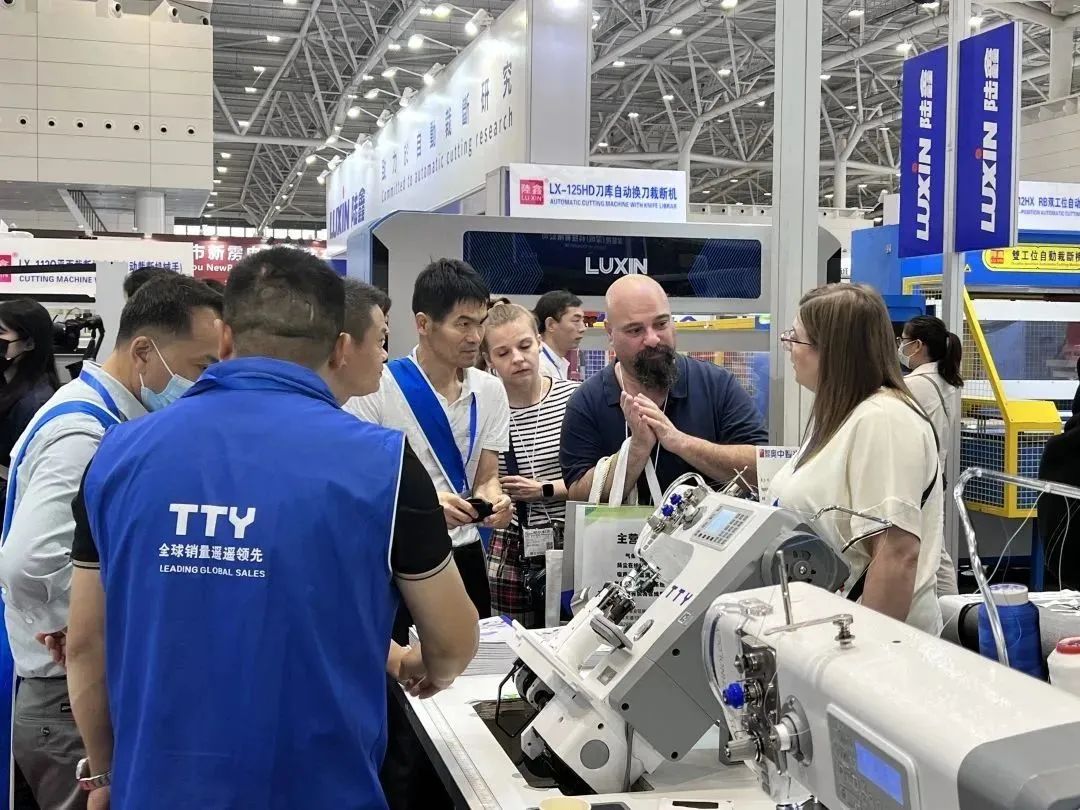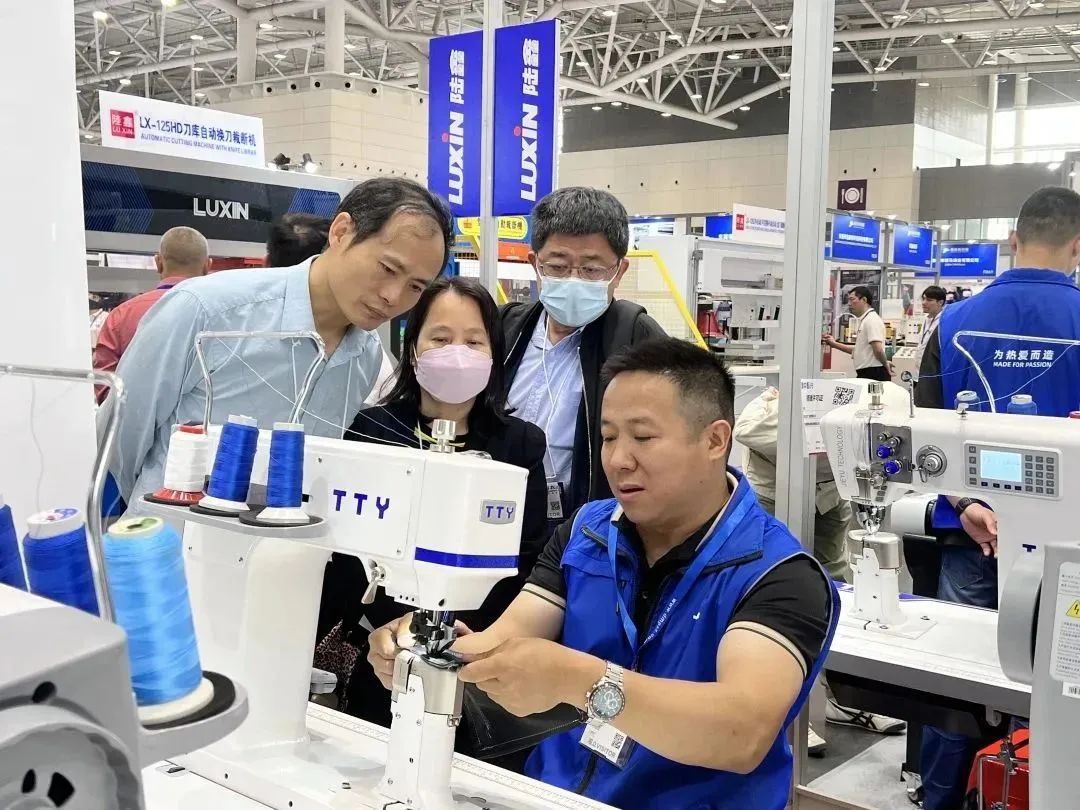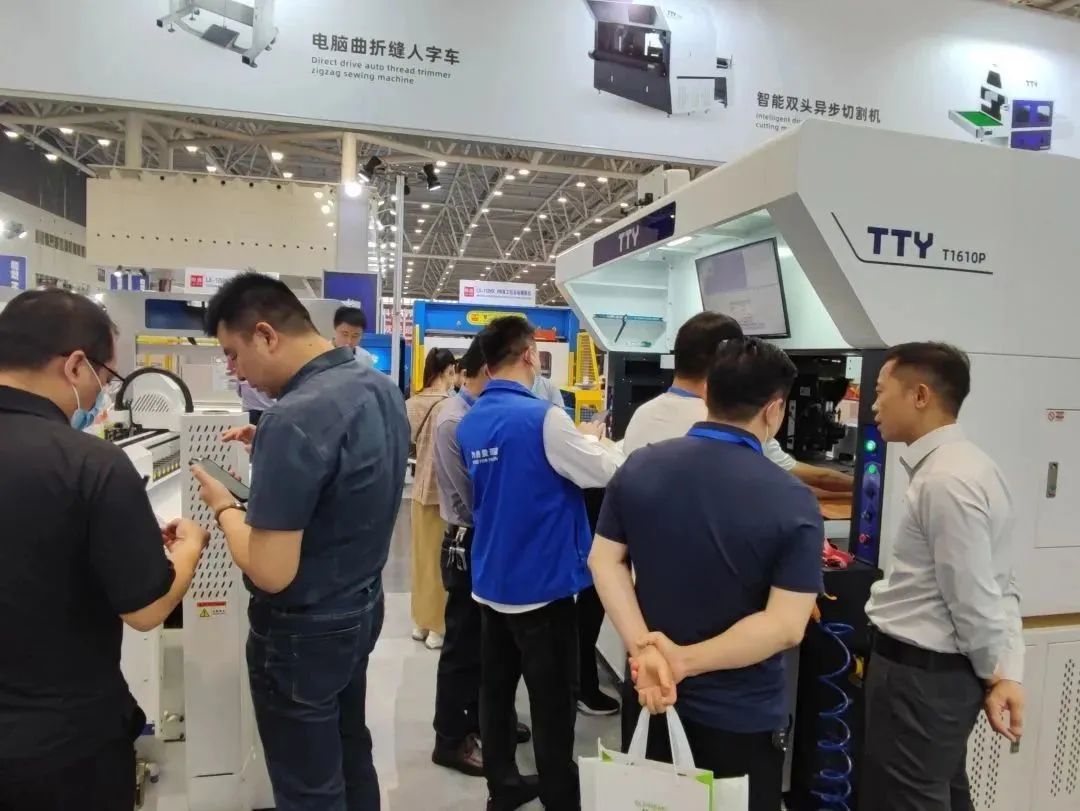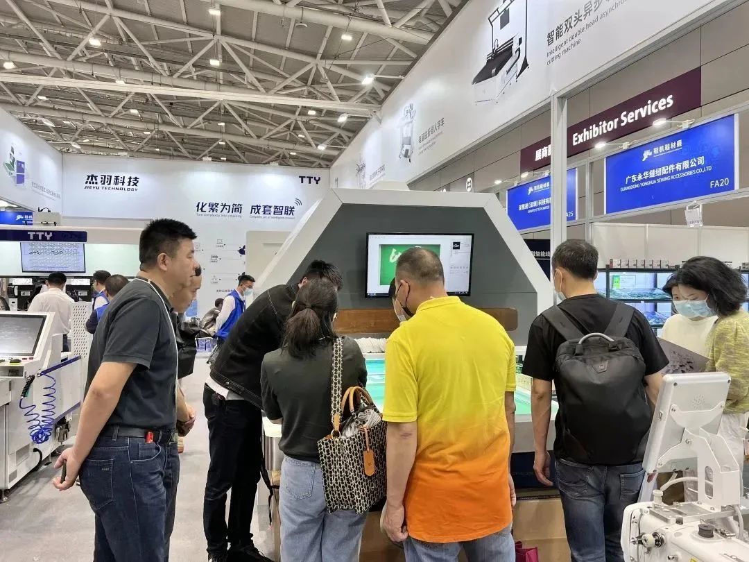 開(kāi)展當(dāng)日,氣氛熱烈,接踵而至的觀展人潮爭(zhēng)相涌入杰羽科技的展臺(tái),現(xiàn)場(chǎng)展示了電腦羅拉車、程式控制電子花樣機(jī)、雙頭智能異步切割機(jī)和視覺(jué)激光噴墨畫線機(jī)一系列工業(yè)縫紉機(jī),并以超高顏值吸引眾多觀展人員紛紛駐足。