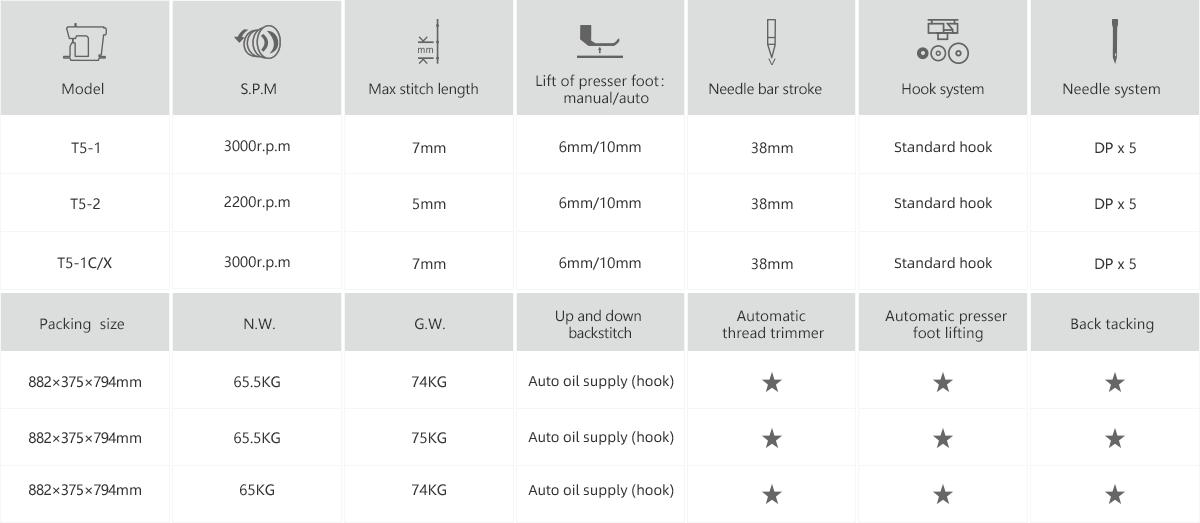 IOT( T5-1/+、T5-2/+ ), short thread trimming( T5-1C/X )